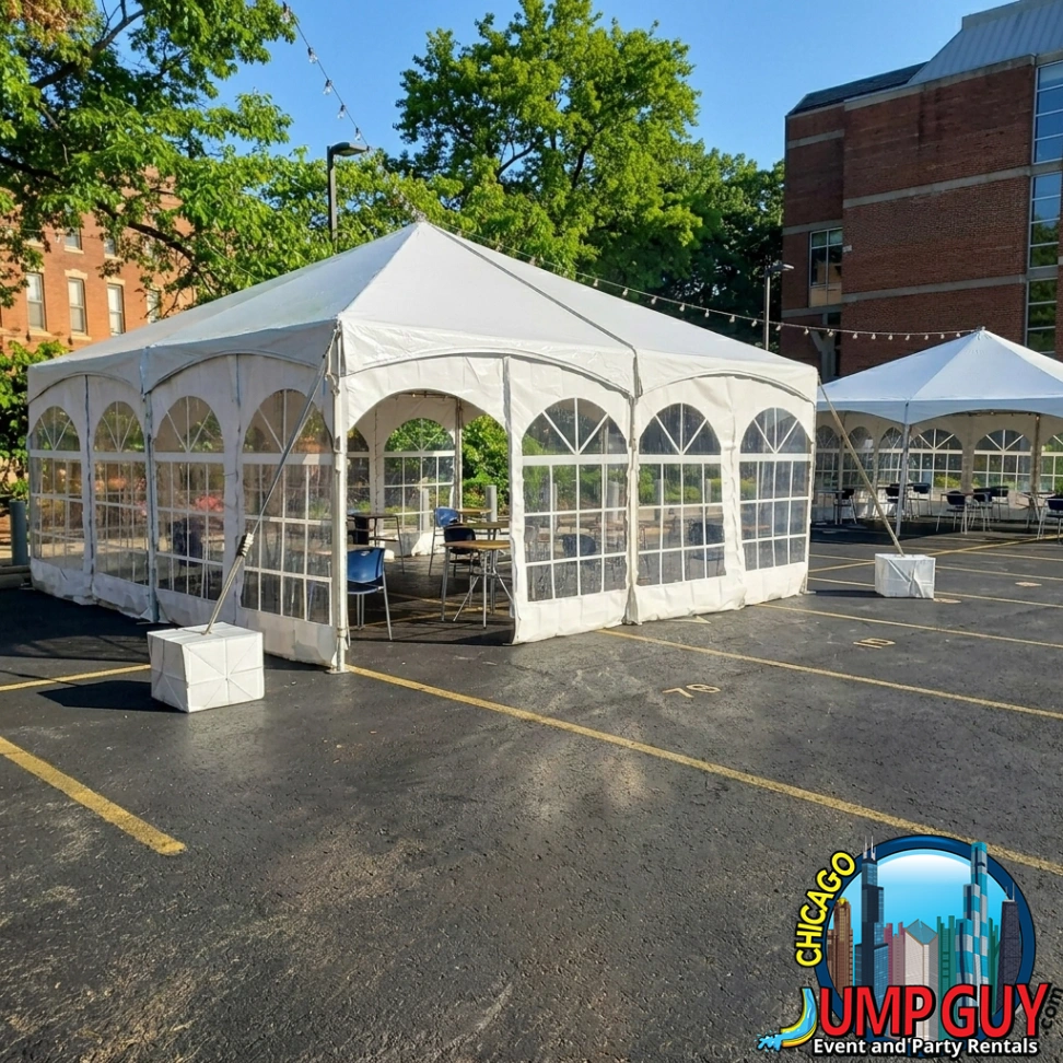 These are the tent rental options available for delivery across Lake Forest’s 60045 ZIP code. Every tent includes full crew setup, surface anchoring for grass or pavement, and complete breakdown after the event. Book through jumpguy.com.